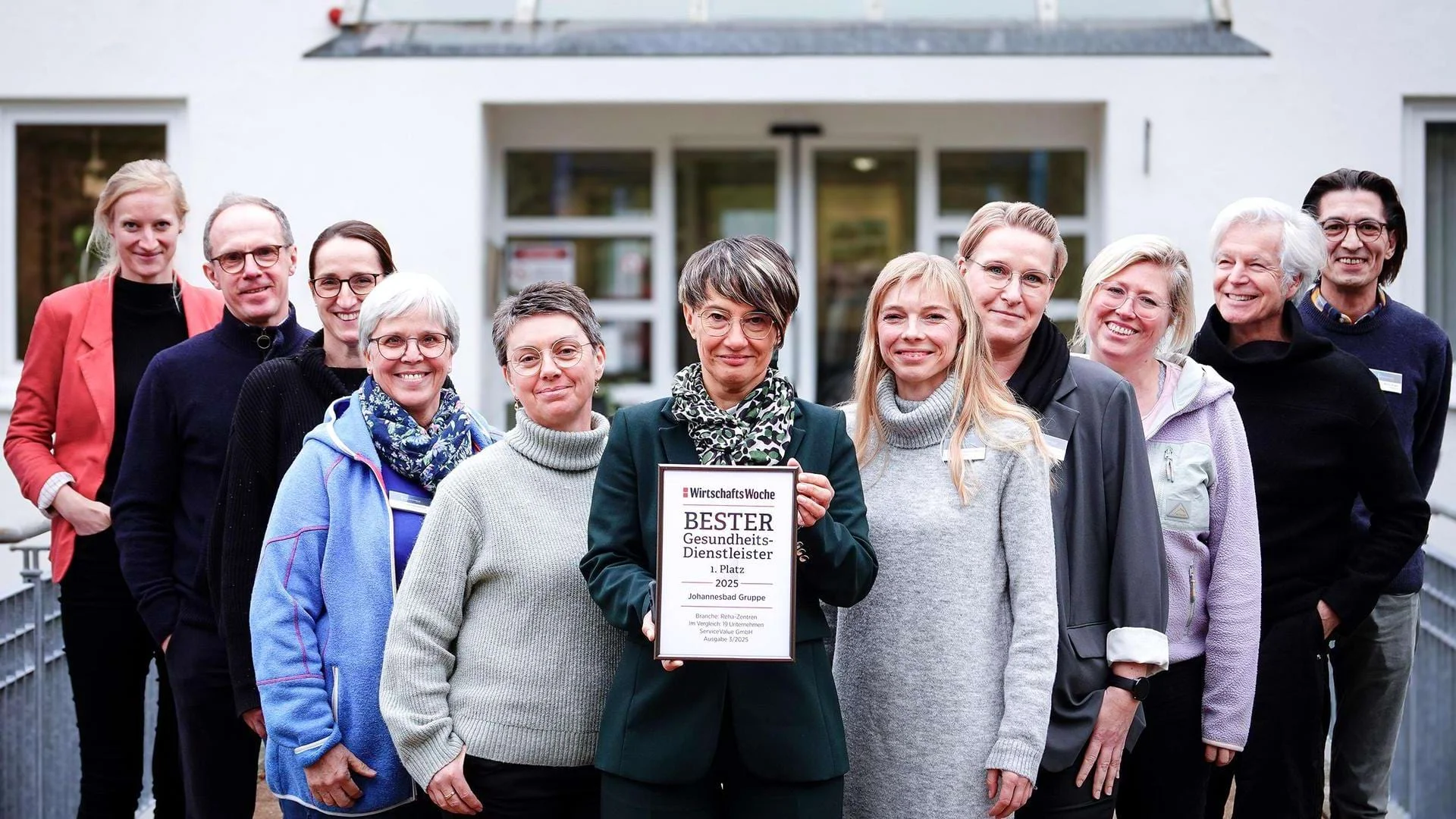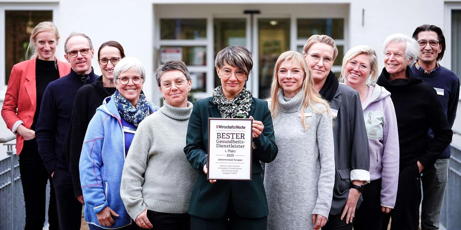 Ein unabhängiges Kölner Marktforschungsunternehmen hatte Ende 2024 im Auftrag des Magazins WirtschaftsWoche etwa 40.000 Kunden und Kundinnen befragt und dabei 290 Gesundheitsdienstleister in 15 Kategorien bewertet – darunter Reha-Einrichtungen, Kliniken, Wellnesszentren, Fitnessstudios. Mit einem Mittelwert von 2,75 erreichte die Johannesbad Gruppe über all ihre Einrichtungen den ersten Platz in der Kategorie Rehazentrum und setzte sich gegenüber 18 weiteren Rehakliniken durch.